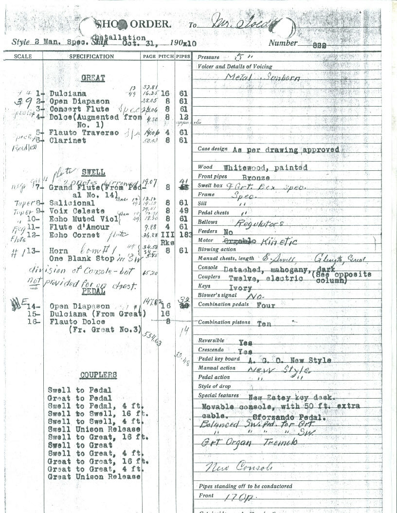 Open Diapason 16 Dulciana 8 Flauto