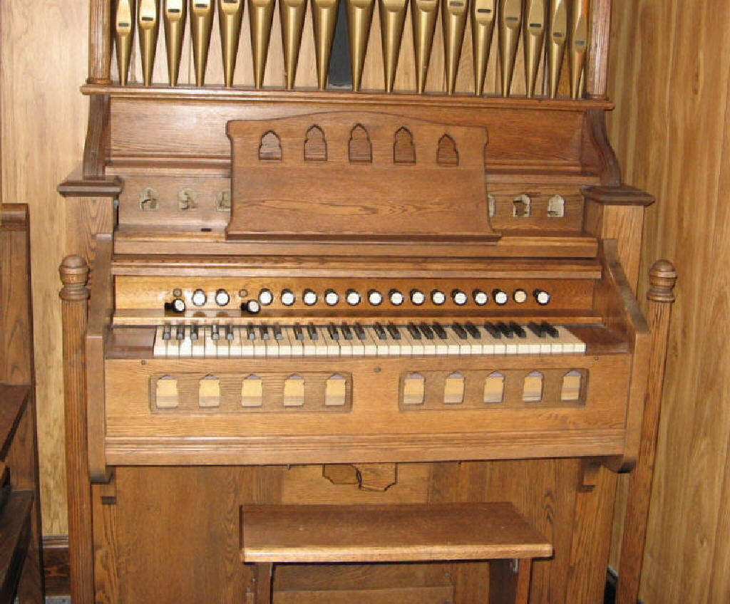 Diapason 8 Dulciana 4 Flute 8 Vox Jubilante Treble Coupler Tremolo |